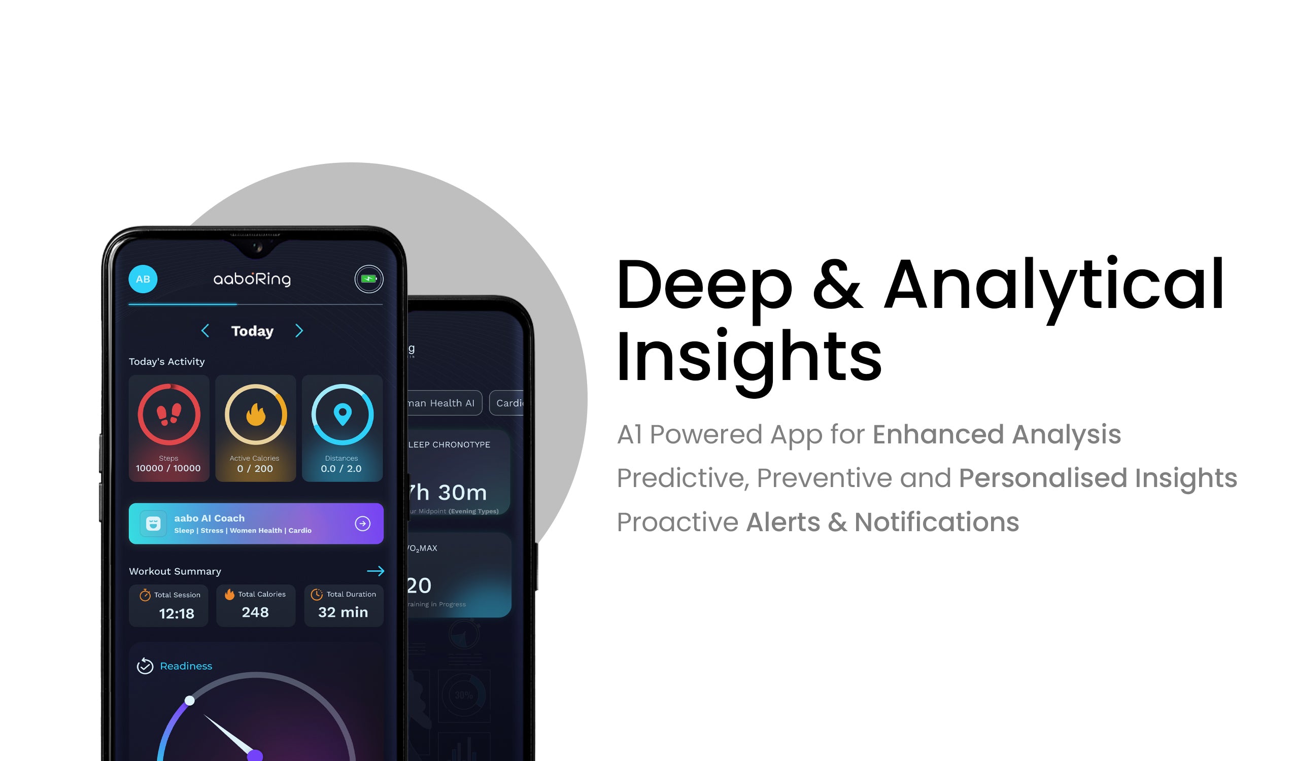 Smart ring powered with AI to track your health and provide in-depth analysis.