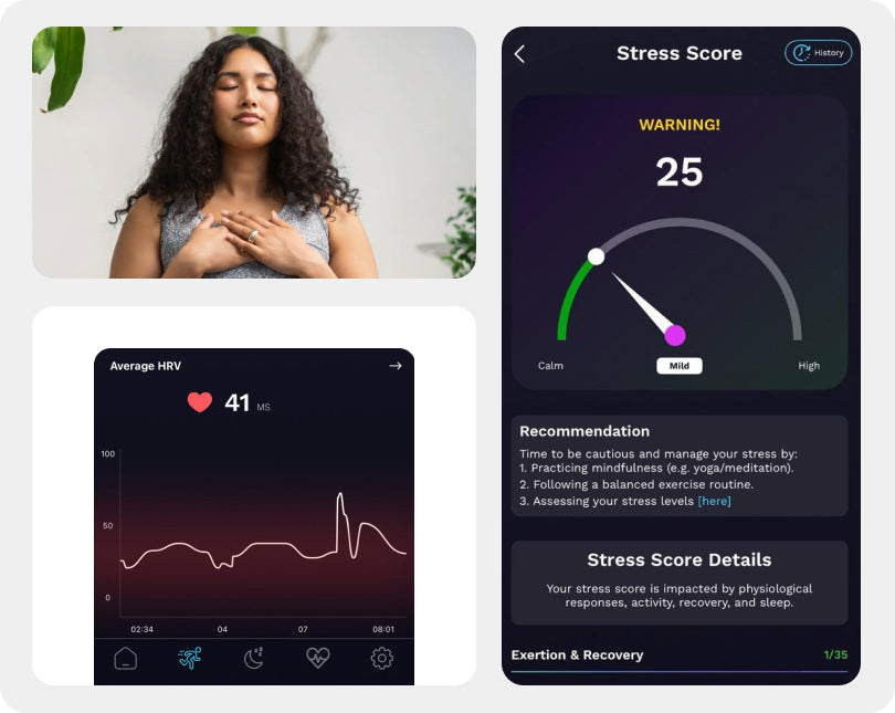 Powered by state-of-the-art stress AI algorithms, aaboRing Pro empowers users with better stress management with real-time stress-trigger detection along with actionable recovery tactics, creating a more balanced lifestyle.